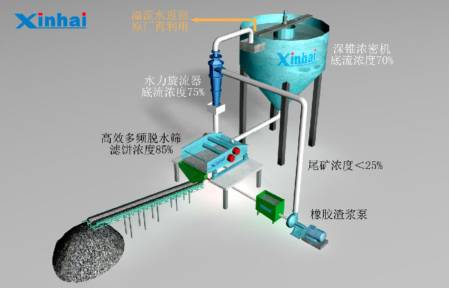 但是隨著濕式尾礦排放弊端的不斷凸顯和其對環境的危害,煙臺鑫海礦山機械有限公司在內的一批國內礦山機械制造商開始推廣尾礦干排工藝,相比于傳統排礦方式,尾礦干排不但能杜絕尾礦池的潰壩和滲漏問題,還能節約選礦廠水耗,有效的節約了成本,具有應用價值。